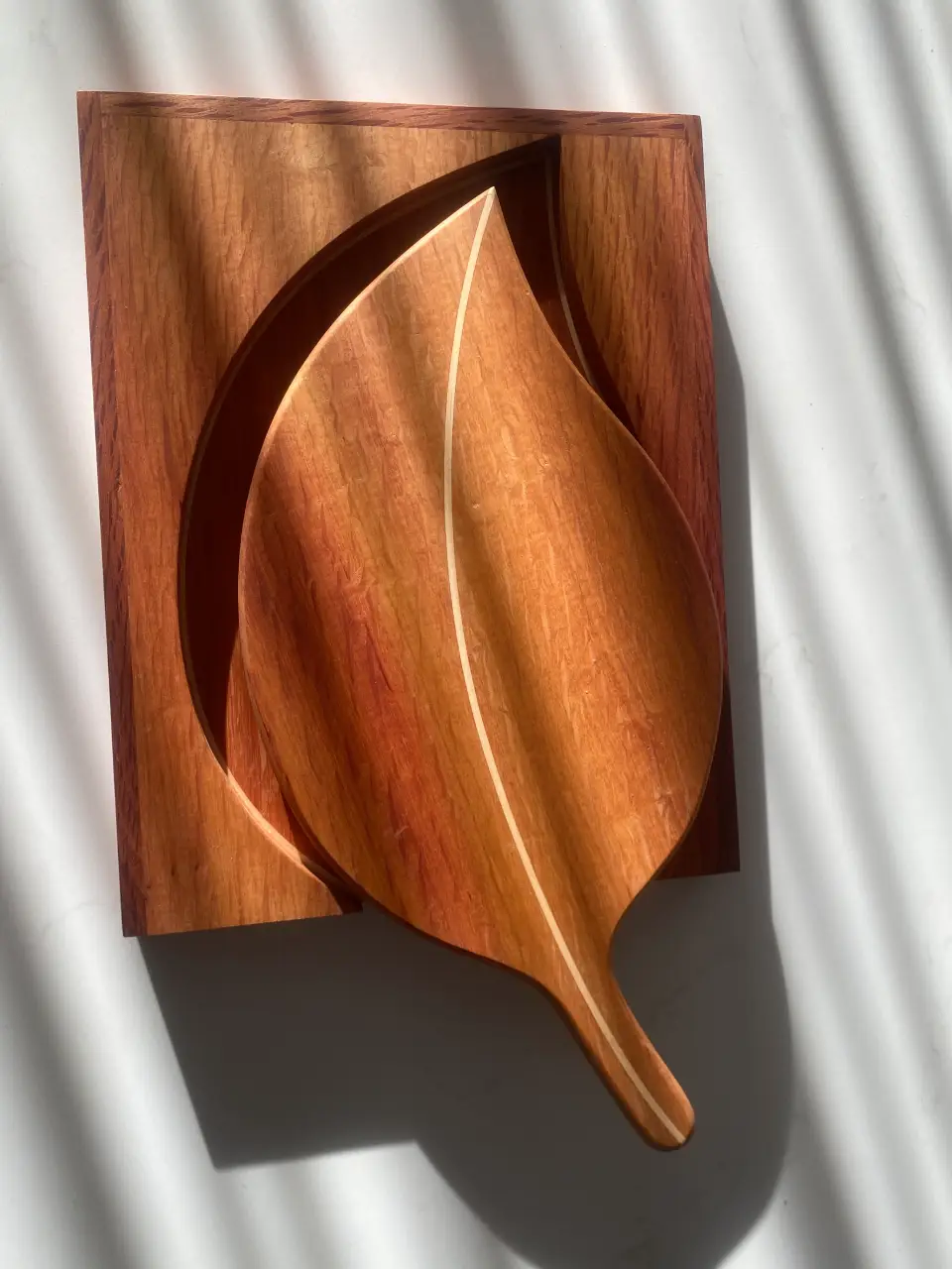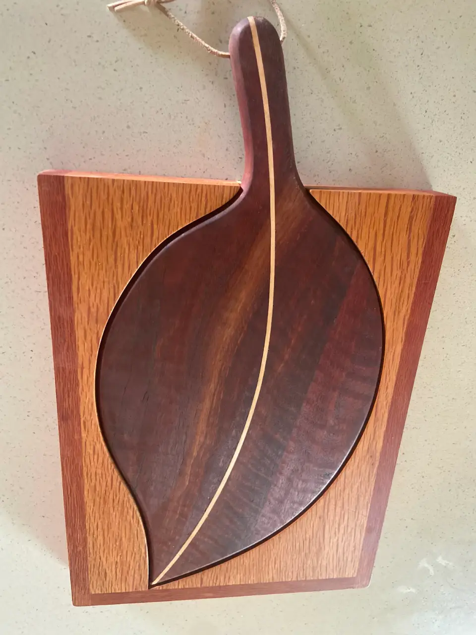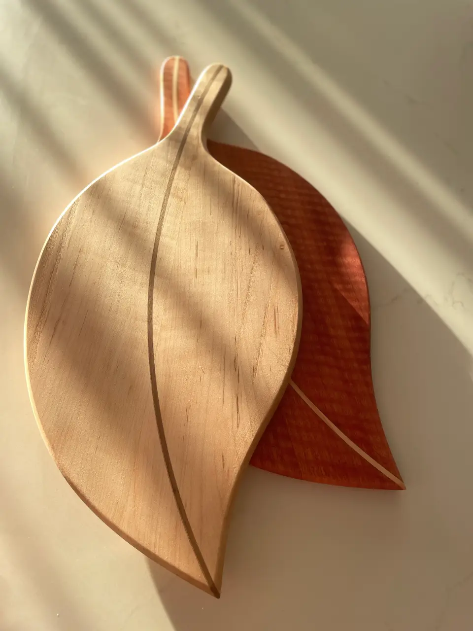 Crafted from premium Sheoak, Walnut, Curly Jarrah, or Maple, our 2-in-1 board is the ultimate blend of form and function. The chopping board features a refined outline of a leaf, while the serving board showcases a contrasting inlay that brings the design to life.