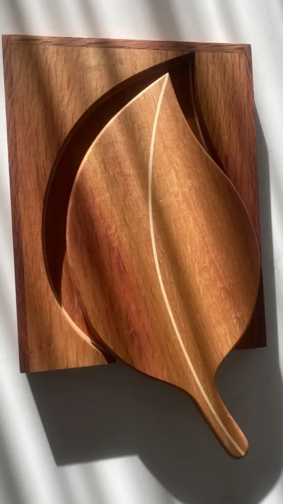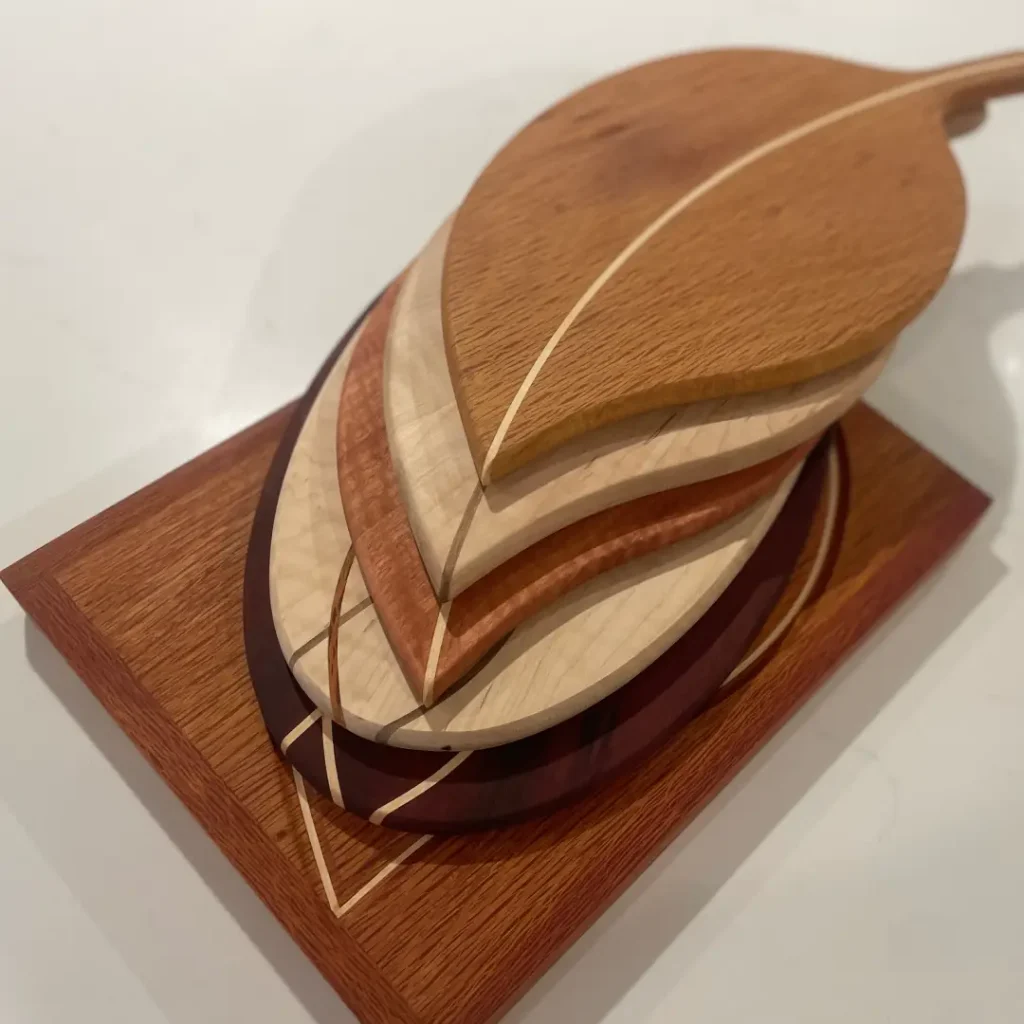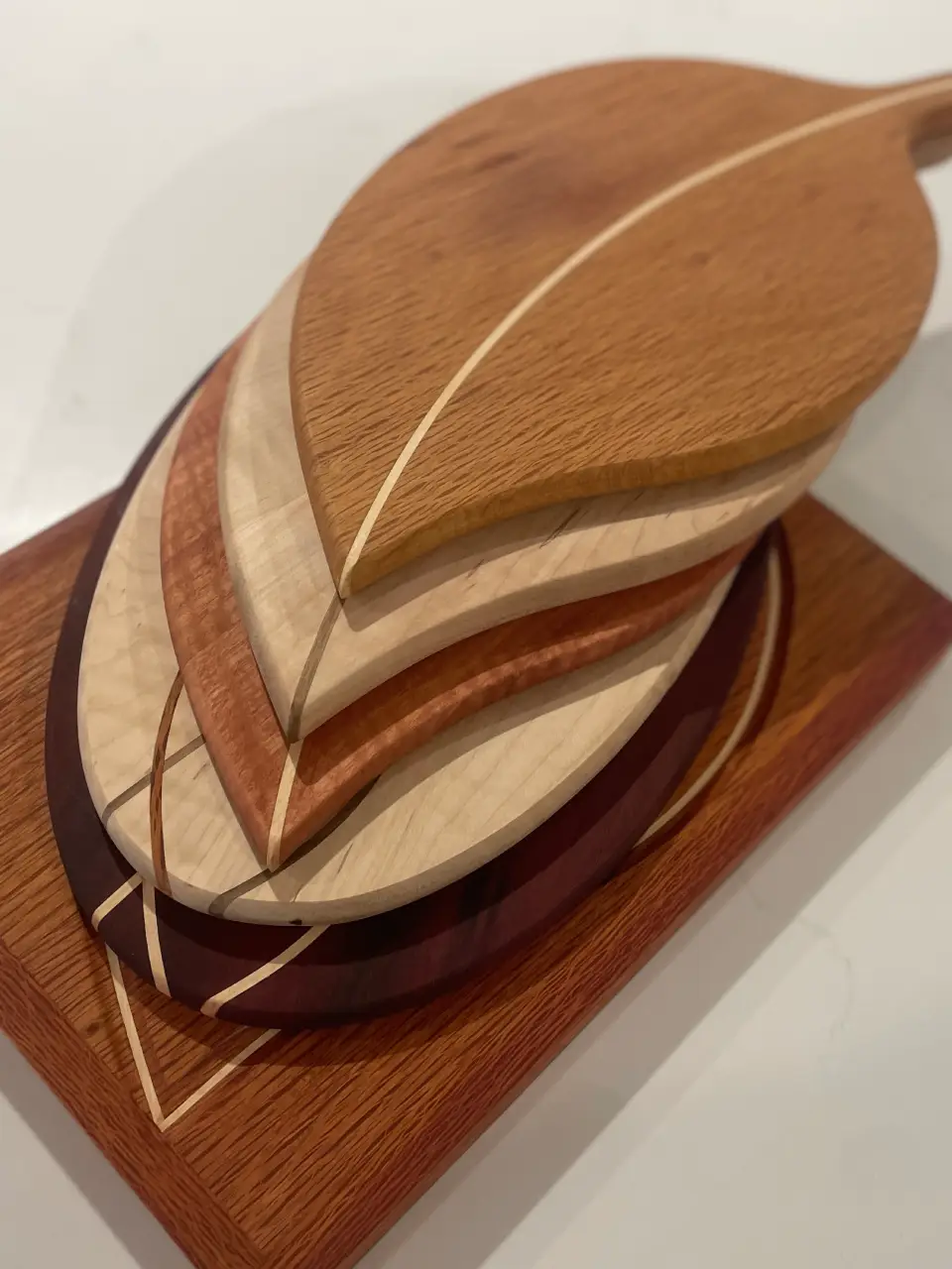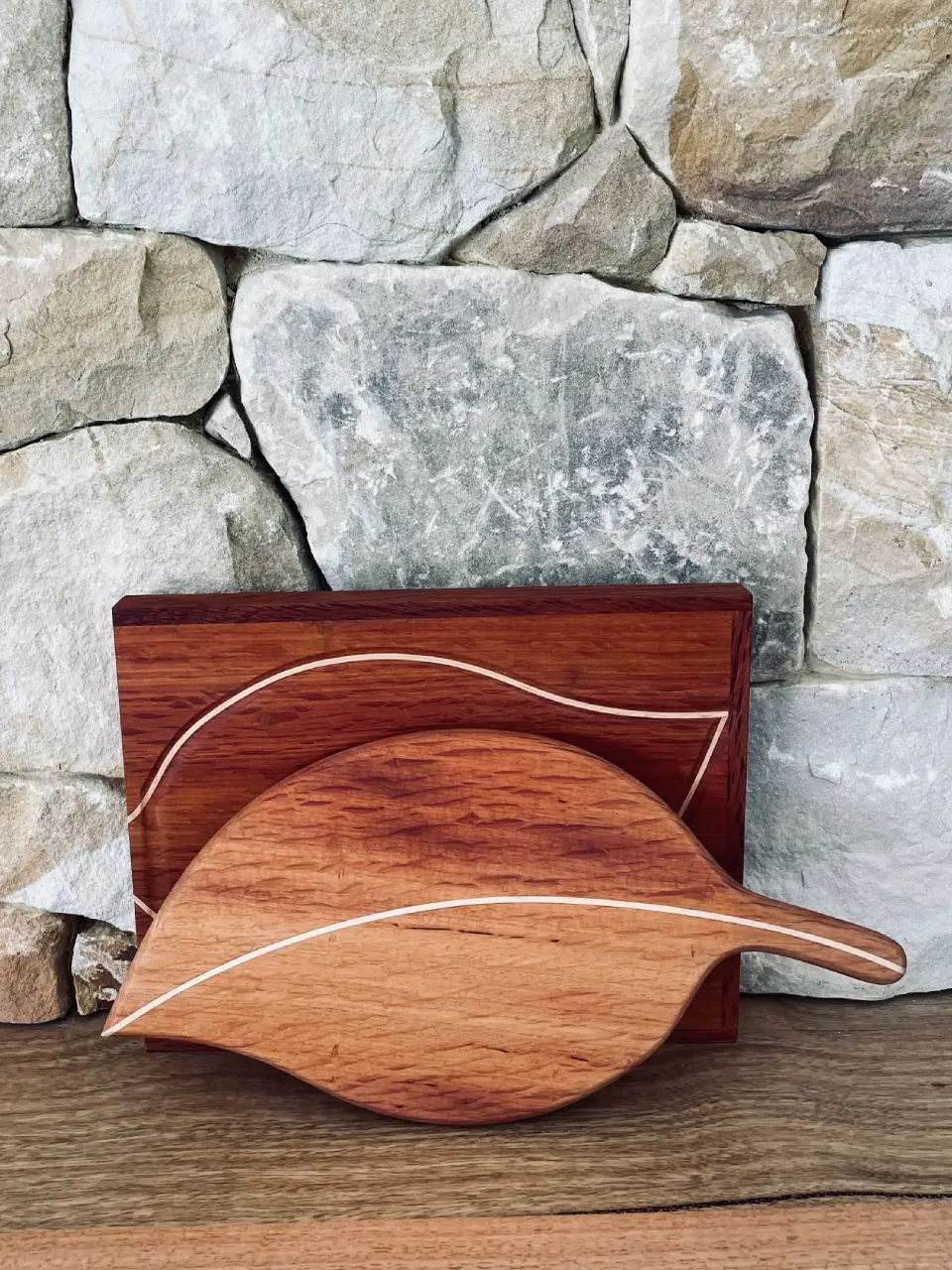 Crafted from premium Sheoak, Walnut, Curly Jarrah, or Maple, our 2-in-1 board is the ultimate blend of form and function. The chopping board features a refined outline of a leaf, while the serving board showcases a contrasting inlay that brings the design to life.